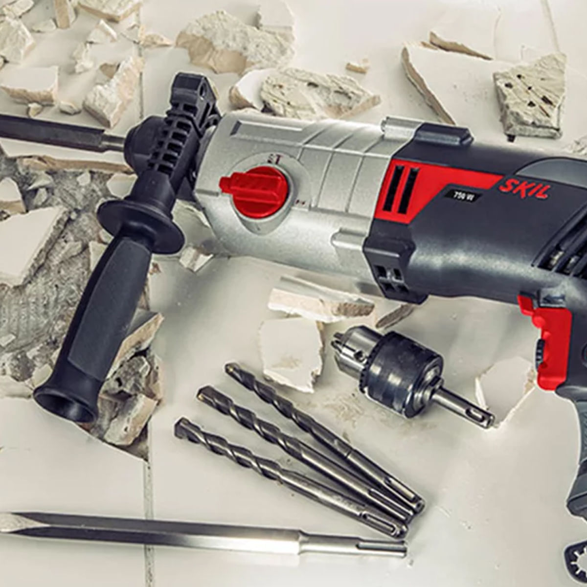 O Martelete Perfurador Rompedor Skil 1859, com potência de 750 Watts e 2,1 Joules de energia de impacto, possui excelente custo beneficio, oferecendo 3 tipos distintos de aplicação sendo perfurações com impacto, perfurações sem impacto e cinzelamento.