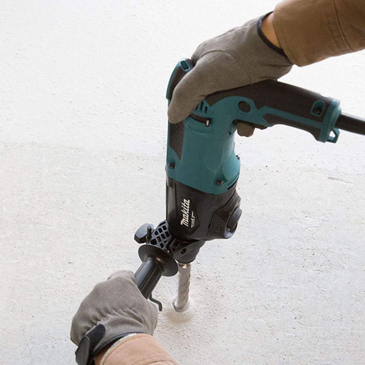 O Martelete Combinado M8701B Makita tem encaixe SDS Plus que facilita a colocação de acessórios com limitador de torque na execução do trabalho.