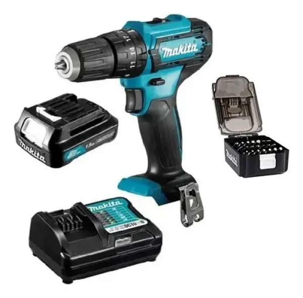 Kit Parafusadeira Furadeira à Bateria 12V HP333DWYX3 Makita e Conjunto de Bits