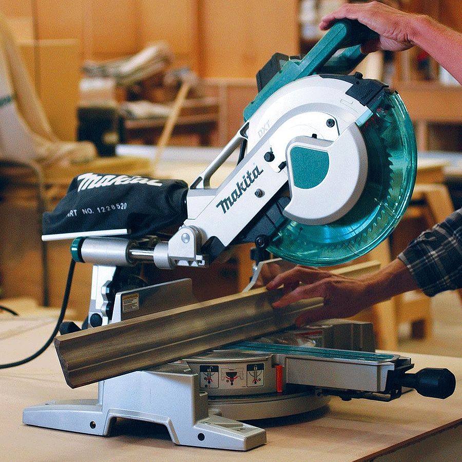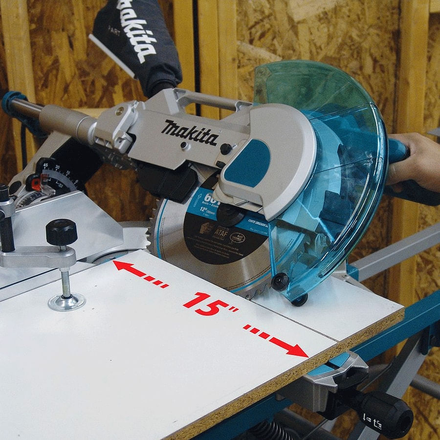 A Makita LS1216 Serra de Esquadria, tem braço telescópico e realiza corte chanfrado para ambos os lados e preciso com a tecnologia DXT.