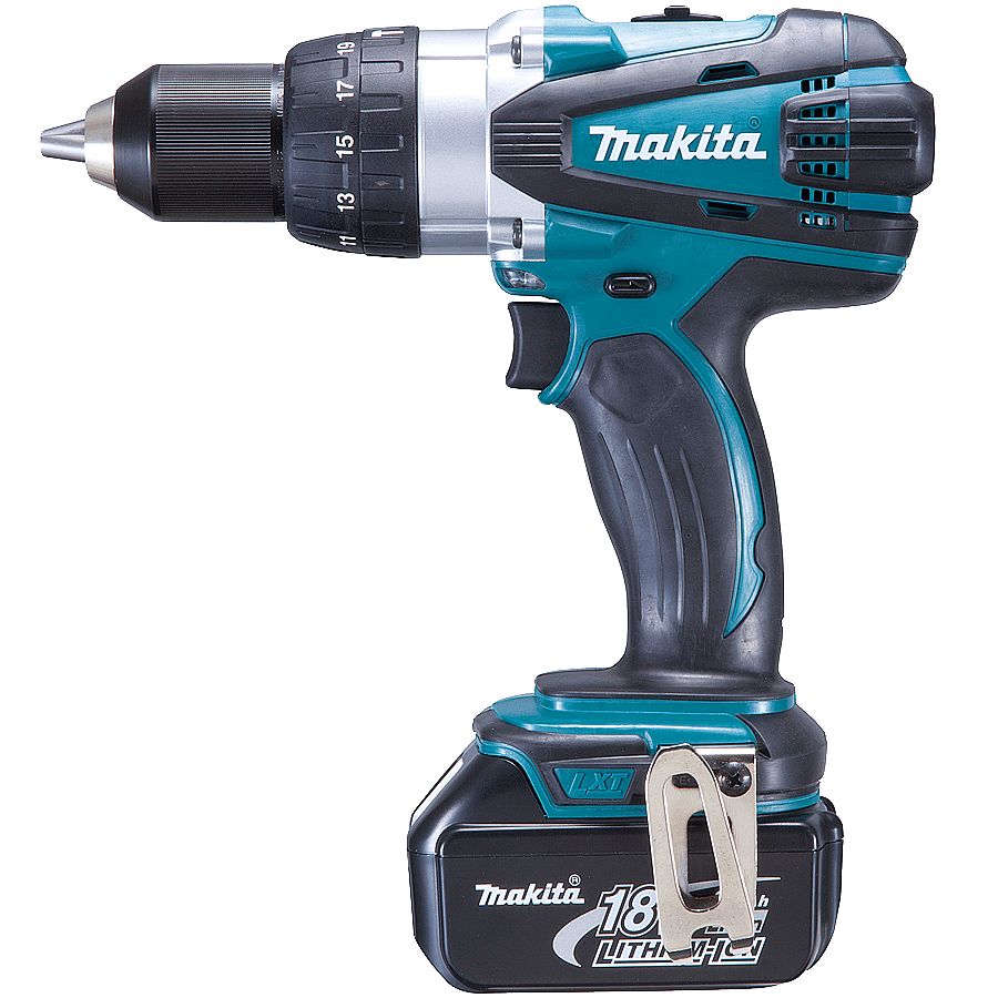Com 21 níveis de torque seletivos a Furadeira DDF458RFE Makita, realiza perfuração em alvenaria, madeira e metais de formar rápida.