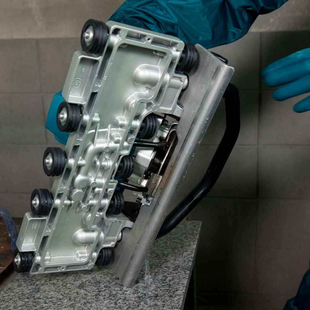 A Serra Mármore 4100NH2R Makita, realiza cortes em tijolos, concreto e mármores de forma uniforme com o disco específicos.