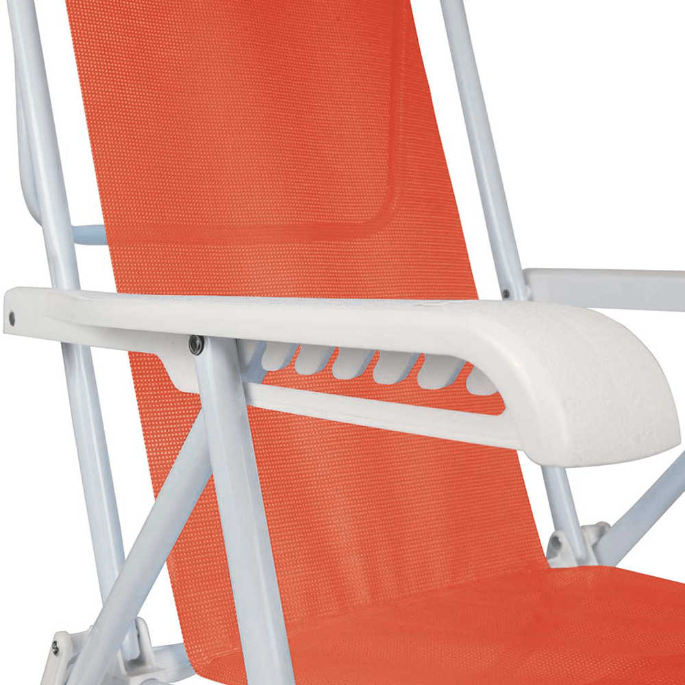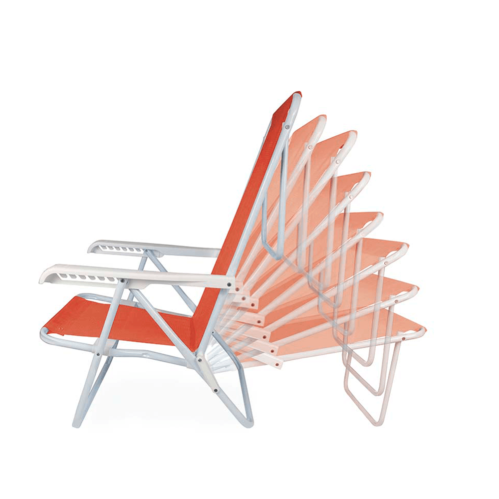 Conta com braço largo e ergonômico com regulagem para oito posições diferentes, para que você relaxe na inclinação que for mais confortável. A cadeira fica completamente sentada na posição 1 e completamente deitada na posição 8, ideal para banhos de sol, além disso, seu apoio permite maior estabilidade nessa posição. Sua tela é produzida em 100% poliéster com revestimento em PVC. Super resistente, suporta até 100 Kg e vai ser a opção perfeita para seus momentos de descanso!