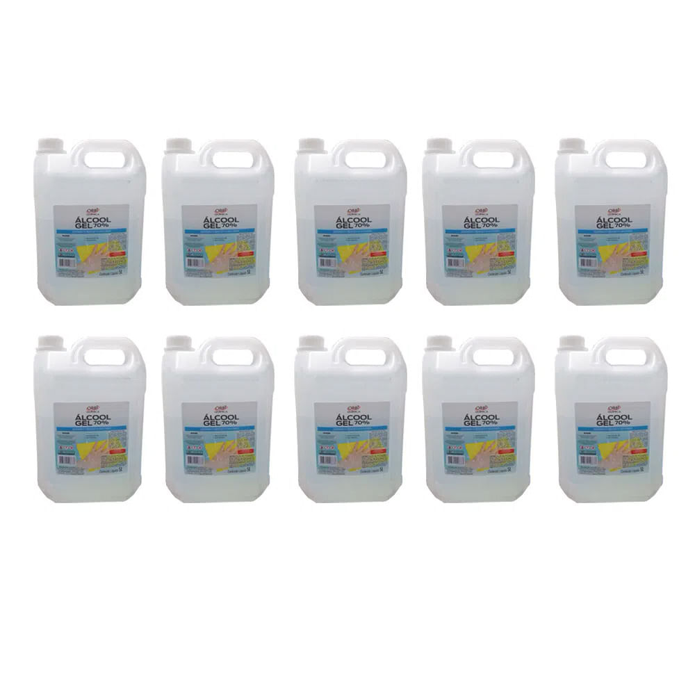 Kit 10 Álcool Gel 70° Antisséptico e Higienizador de Mãos 5 Litros Orbi