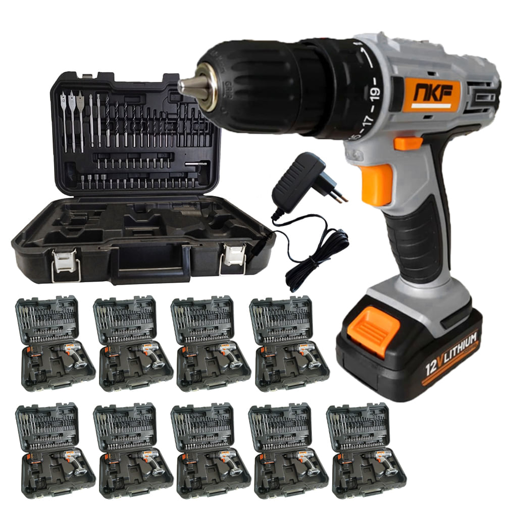 Kit 10 Furadeira Parafusadeira à Bateria 12V com Maletas e Acessórios FP12X50 NKF