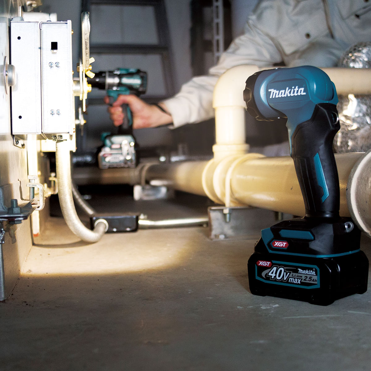 A Lanterna de Led ML001G Makita, tem autonomia de até 55 horas de iluminação utilizando a bateria de 40V.